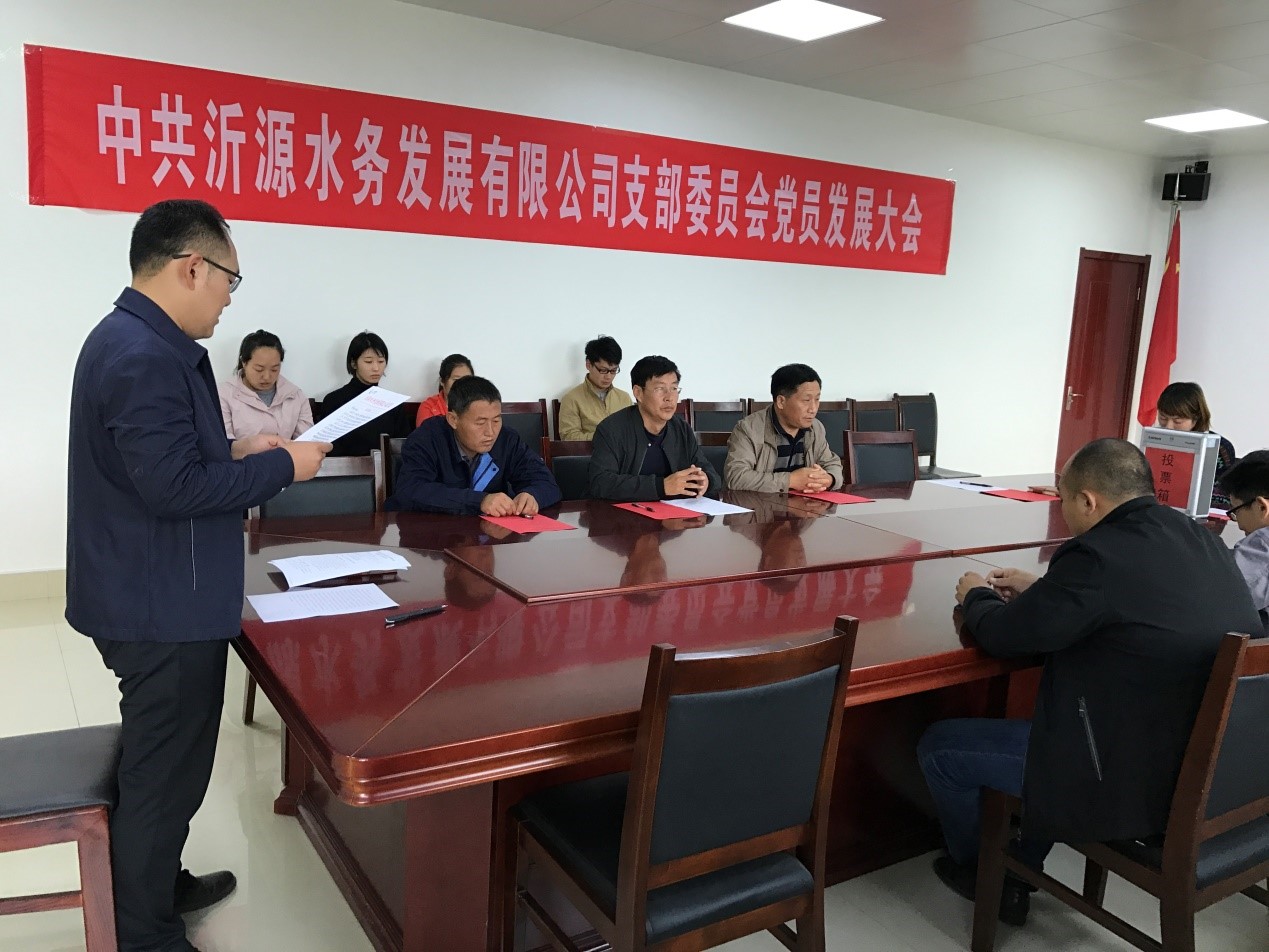 10月16日下午,沂源水务发展有限公司党支部召开了党员发展大会。会议由公司党支部书记孙兆欣主持,沂源县经济开发区党工委亓玉河书记、沂源水务发展有限公司全体党员及群众代表参加了会议。