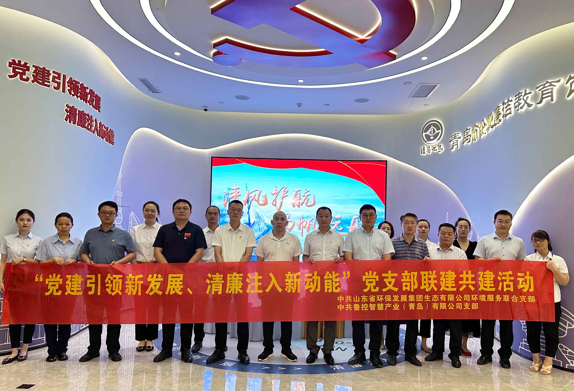 为深入开展党纪学习教育,进一步激发基层党建活力,推动形成党支部联建共建机制,6月26日下午,中共中欧在线官网环境服务联合支部和中共鲁控智慧产业(青岛)有限公司支部联合开展“党建引领新发展、清廉注入新动能”为主题的党支部联建共建参观青岛市企业廉洁教育馆活动,全体党员和中层及以上领导参加。