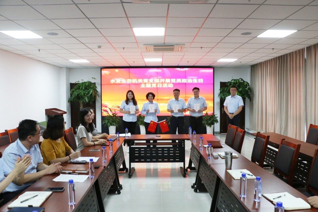 为进一步增强党员身份意识,增强党员的归属感、荣誉感和责任感,提升党组织的创造力、凝聚力和战斗力。7月29日,水发生态机关党支部以主题党日为载体,为6 -8月份入党的党员集体举办了一场特殊的生日会----党员“政治生日”会。水发生态机关党支部全体党员参加此次主题党日活动。