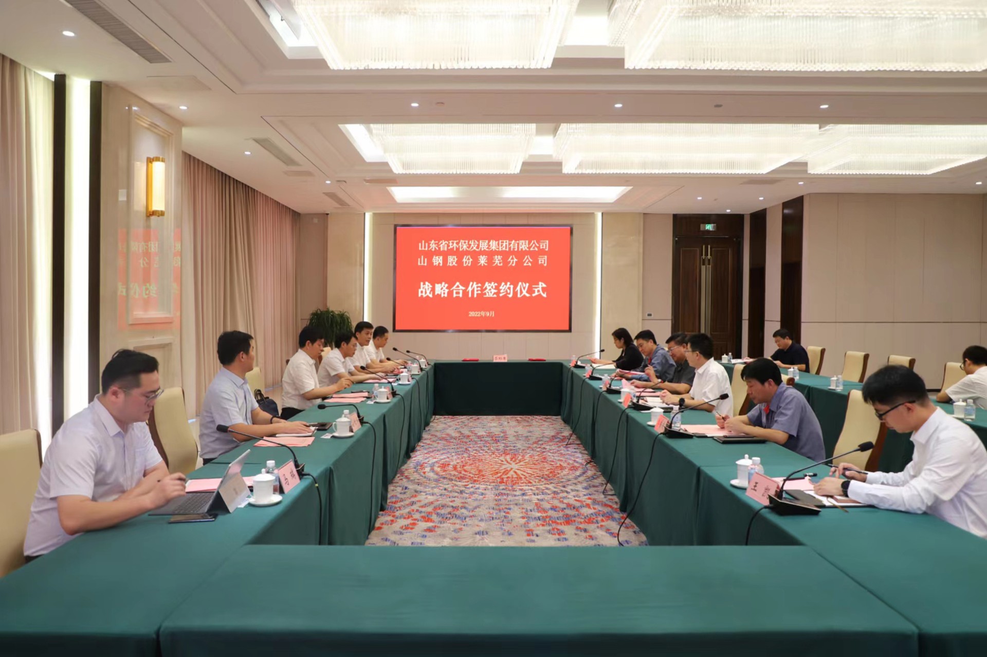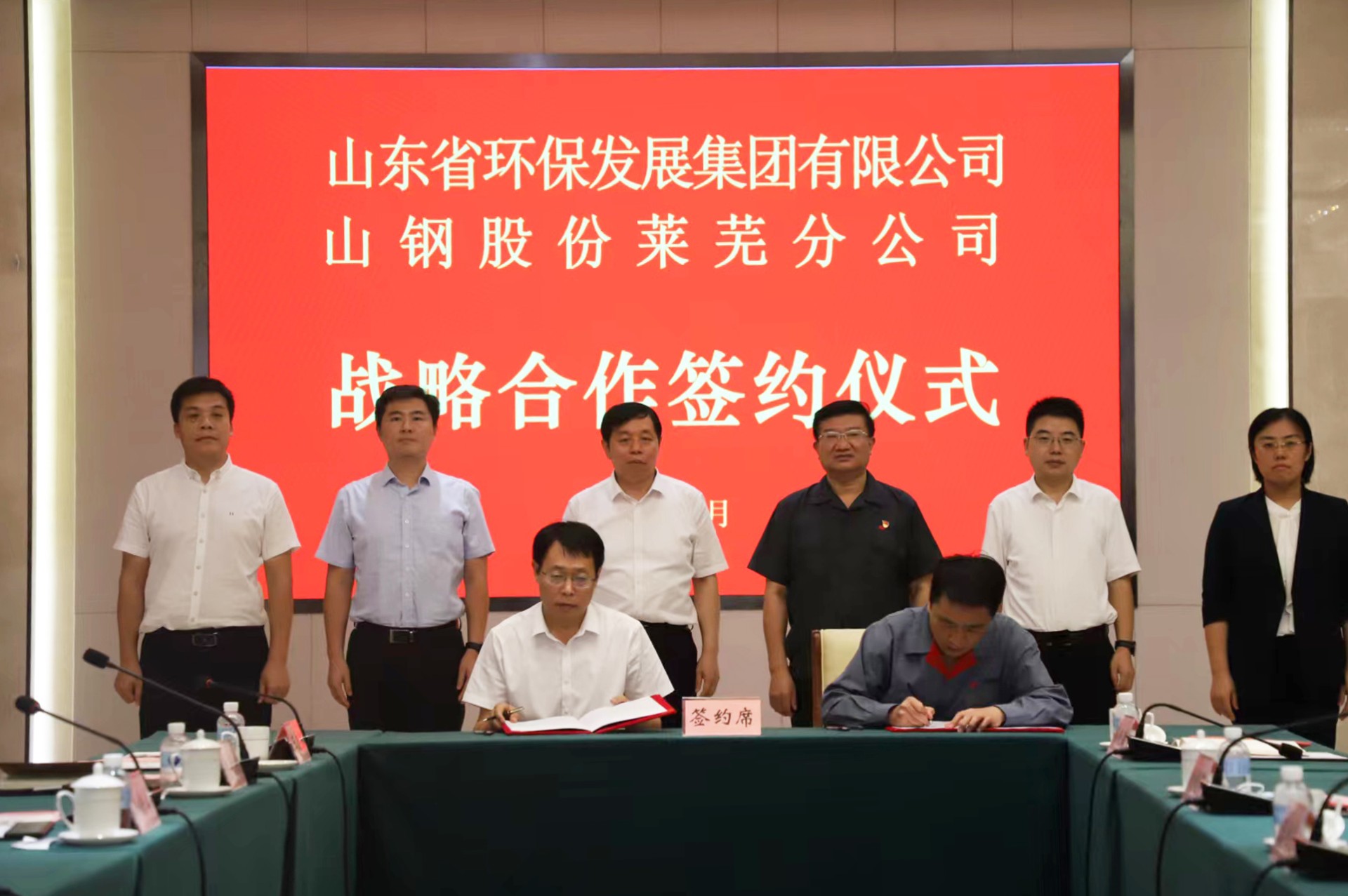9月29日,山东省环保发展集团有限公司与山钢股份莱芜分公司在济南市钢城区签署“战略合作协议”。钢城区委常委、副区长高宇,山钢集团党委委员、副总经理、山钢股份党委书记、董事长王向东,省环保集团党委副书记、董事、副总经理曾繁领,省环保集团党委委员、副总经理、水发生态集团党委书记、董事长公培山出席签约仪式。