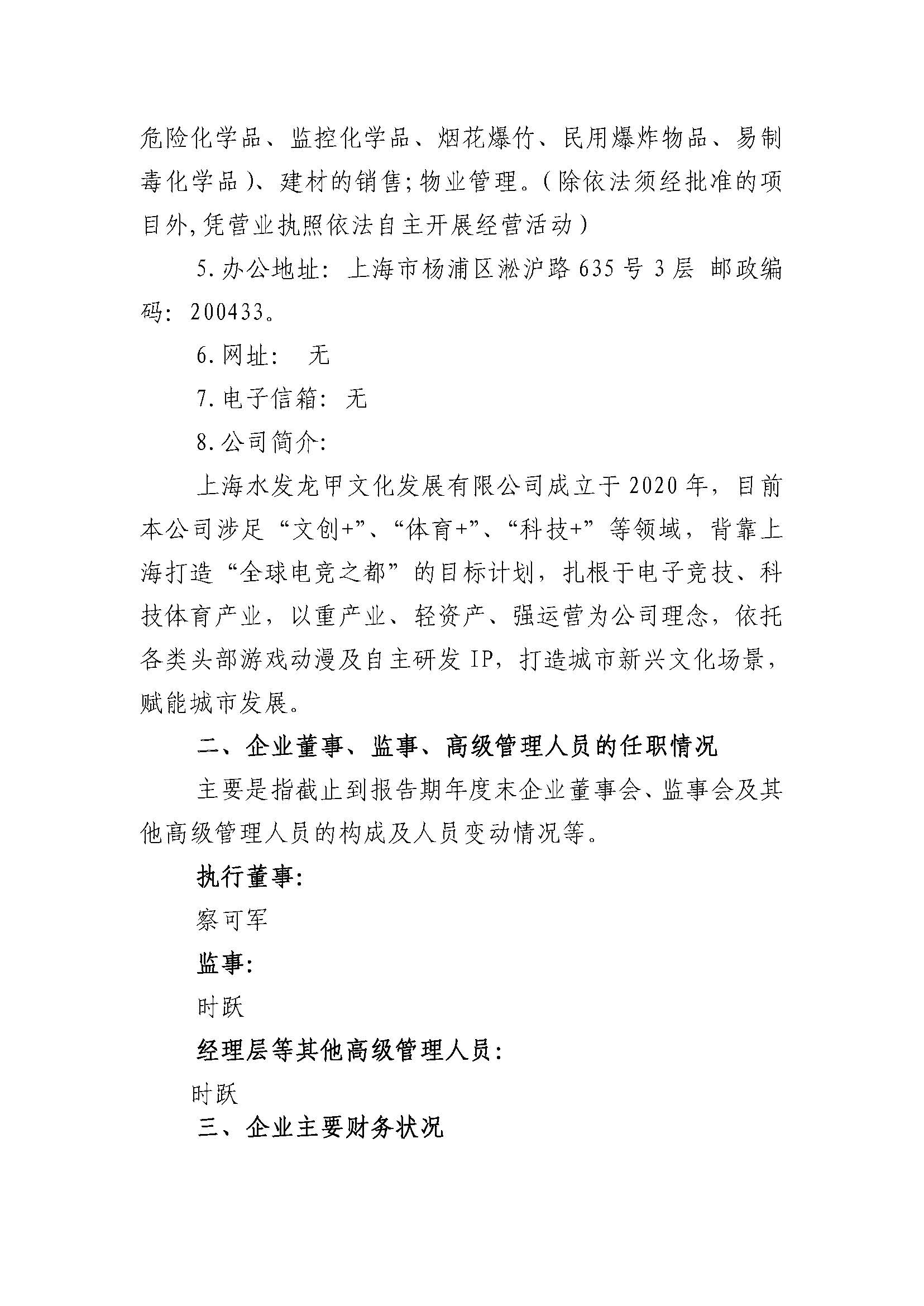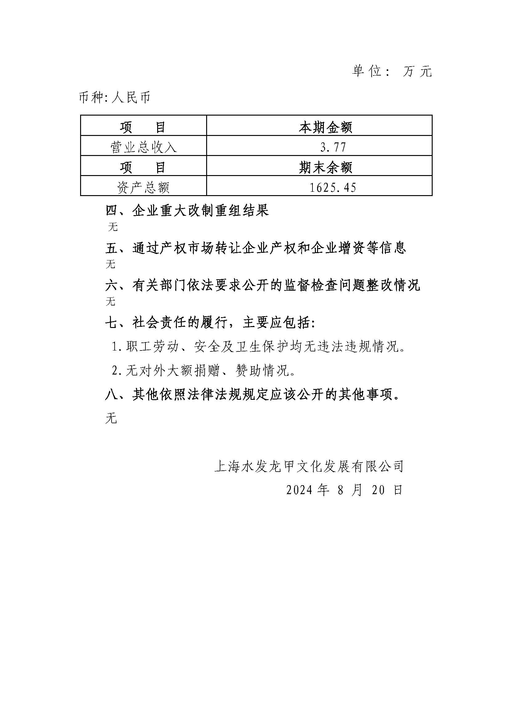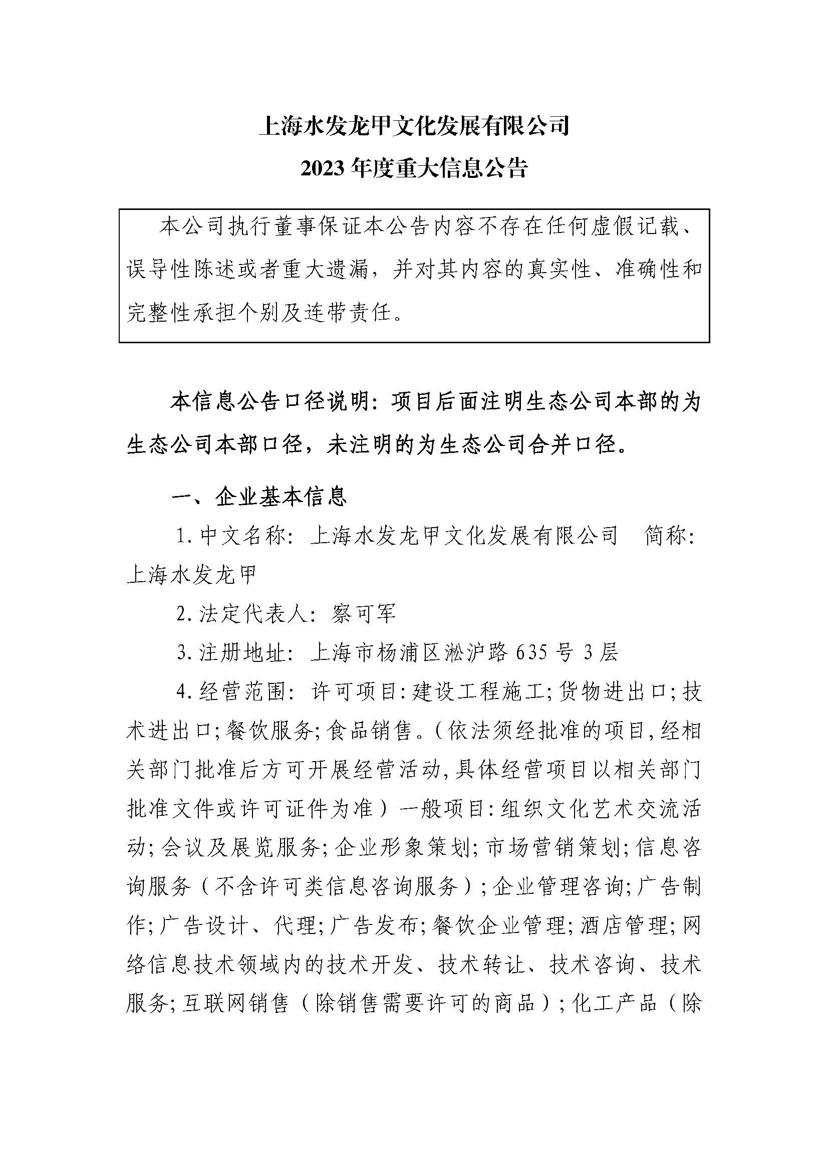 上海水发龙甲文化发展有限公司 2023年度重大信息公告