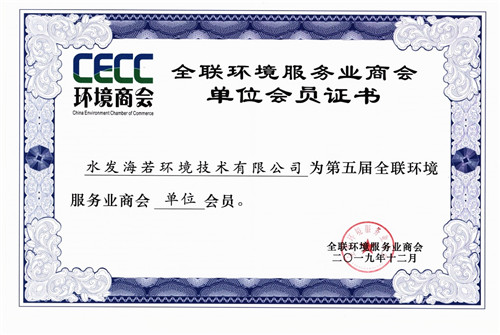 近日,水发海若环境技术有限公司通过全联环境服务业商会(简称环境商会)审核批准,正式成为环境商会会员单位,并获颁第五届“会员证书”及“牌匾”。