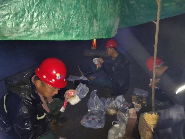 晚上八时,大雨倾盆。周村区水利局党委书记、局长艾书波一行赶到现场查看抢修情况,并强调要做好安全保障工作。已经在泥泞中“摸爬滚打”4个多小时的抢修人员利用更换管件的空隙,或站在设备旁或席地而坐,享受着后勤保障小组提供的盒饭,仅仅是几分钟的时间就满足的擦了擦嘴巴重新投入到抢修工作中去。“烟花”也在故意作对,疯狂的砸在他们的身上、脸上,但他们却未丝毫停歇,凭借多年的经验及责任感,经历了十个小时,于29日凌晨完成了抢修。